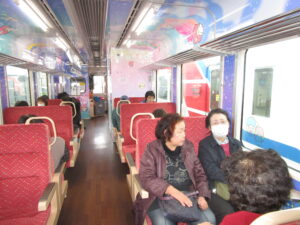 第1回鉄道探訪・三陸鉄道宮古~釜石線の旅に19名の方が参加しました。浄土ヶ浜は名勝地で一度は訪れたいと思っていた方が多く、「参加して良かった」と語りながら散策していました。三陸鉄道では、天の川をイメージした、「キキ・ララ」のラッピングした車内で、「電車に乗るは何年ぶりかな」と心弾む声が聞こえてきました。