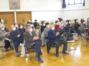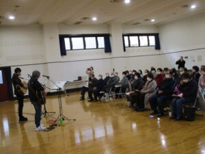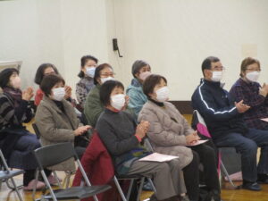 第5回南寿大学は、アマチュアバンド「清水バンド」をお招きし開催しました。昭和歌謡の「瀬戸の花嫁」や「神田川」、童謡「ふるさと」など懐かしい曲や、最近の曲では、「ばけばけ」の主題歌など幅広いジャンルの楽曲を弾き語りしていただきました。参加者が手拍子や歌を口ずさんで、会場全体が一体となり、音楽を通じて楽しい時間を過ごしました。