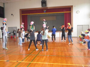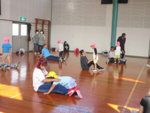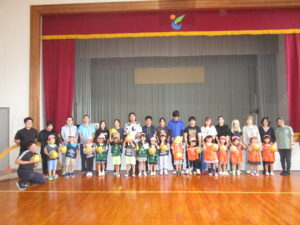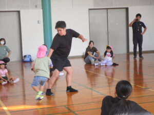 本日は平塚紀仁様に、南方幼稚園の親子サッカー教室を東郷公民館定住センターで開催しました。スキンシップを取ることをメインの教室で、親子でボールを投げたり、走ったりと、たくさん体を動かしました。シュート練習では園児が蹴り、親がゴ―ルキーパーとなり、互いの愛情が見られる場面もあり、「楽しかった」と笑顔がいっぱいのサッカー教室でした。講師からは、「今後も生活の中でスキンシップをいっぱいとって、たくさん褒めてあげて欲しい」とお話がありました。