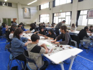 米山町 日高見窯 鈴木由香様を講師に、南方小4年生21名と保護者の参加で親子陶芸教室を開催しました。親子で協力しながら「自分の分、両親の分」など家族を思いながら、カップやお皿等を作る姿が印象的でした。「楽しかった。」「焼き上がりが楽しみ」と感想があり、出来上がった作品は日高見窯で焼き上げていただき、後日届けていただきます。